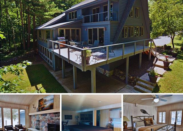 queen, shower, toilet, tub, twin/ single, forests, Dining, Television, Air Conditioning, Clothes Dryer, Fireplace, Heating, Internet, Living Room, Parking, Telephone, Washing Machine, Coffee Maker, Dishes & Utensils, Dishwasher, Kitchen, Microwave, Oven, Refrigerator, Stove, Toaster, Dining Table, bird watching, paddle boating, photography, scenic drives, sight seeing, walking, Lake View, Lakefront, Rural, Water View, Waterfront, Balcony, Deck / Patio, Lawn / Garden, Outdoor Grill, bedroom, full, shower, cycling, fishing, freshwater fishing, hiking, hunting, swimming, children welcome, non smoking only, pets not allowed, necessary, Dining Area, Away From It All, Family, Outdoor lighting, Smoke detectors, Carbon monoxide detector, Fire extinguisher, Emergency phone number: Police, Enhanced cleaning practices, Clean with disinfectant, No-contact check-in and check-out, High touch surfaces cleaned with disinfectant, Towels and bedding washed in water that's at least 60sC/140sF